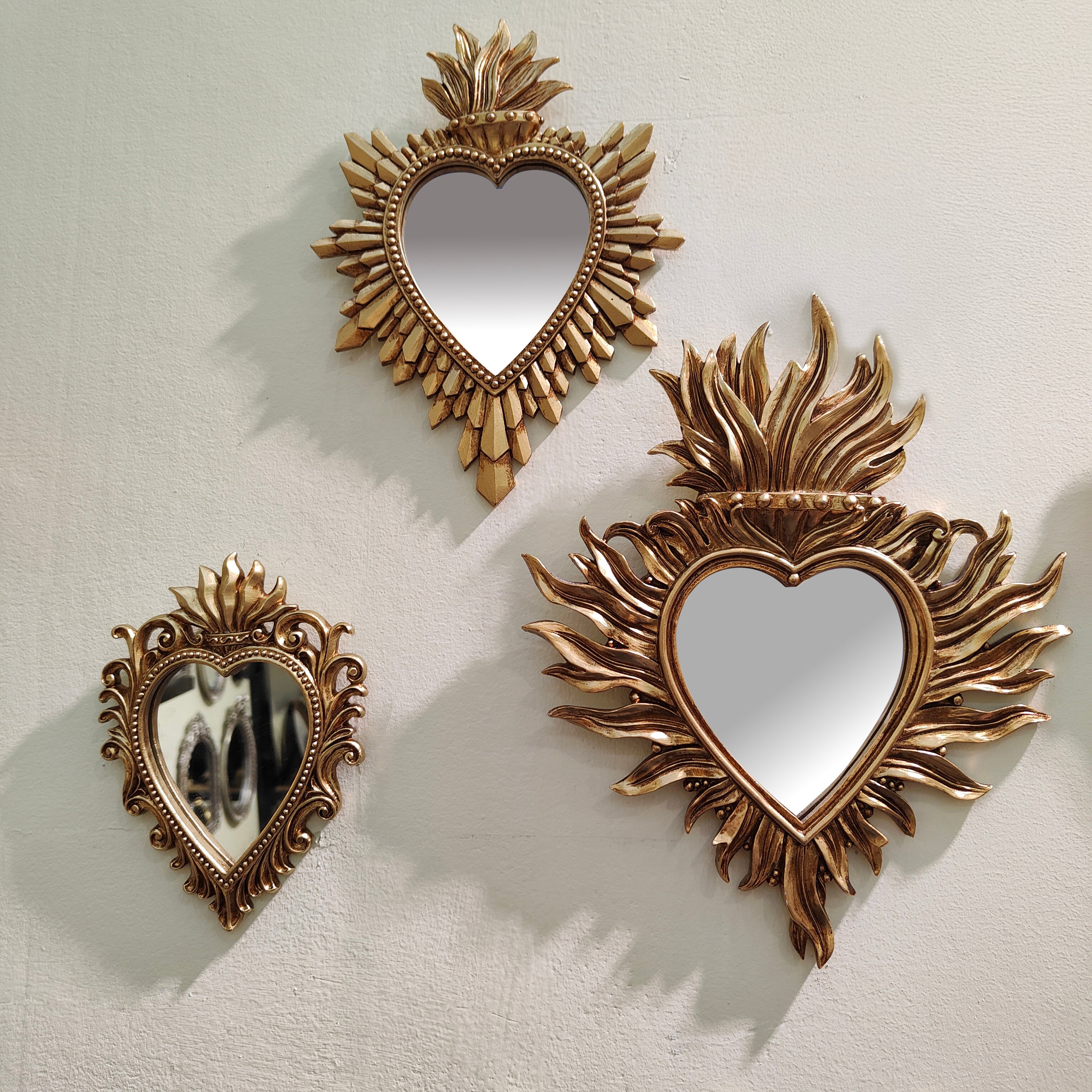 Jolie décoration murale coeur en résine dorée. Style ex-voto, cette décoration apportera une touche mystique et poétique à votre intérieur. Dimensions: 16x21cm
