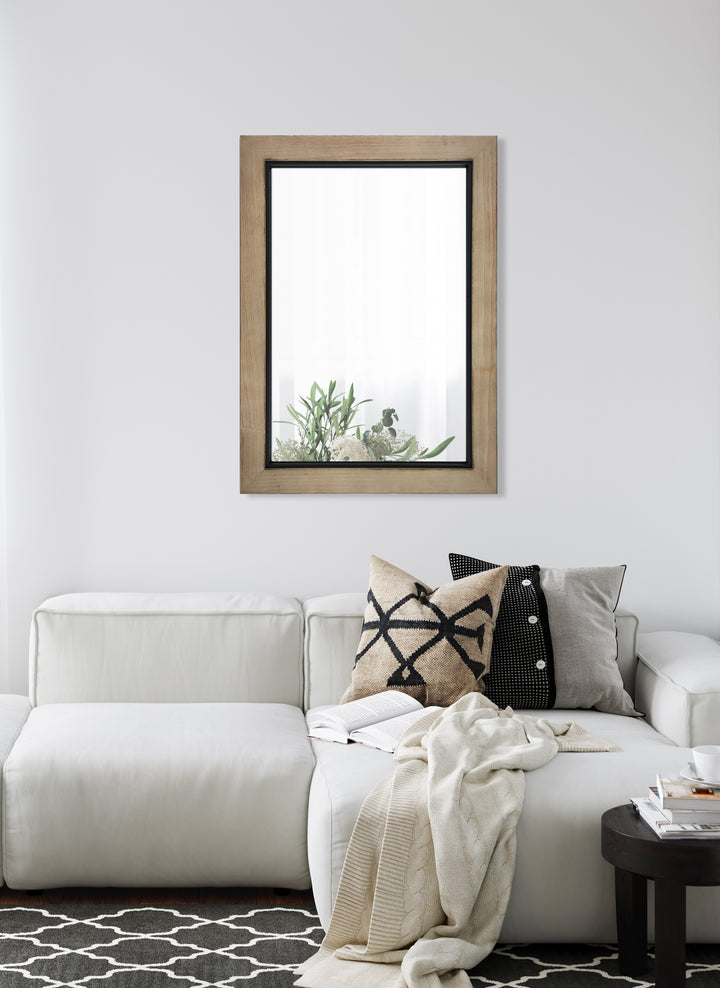 Miroir atelier en bois clair et métal noir mat. Aux dimensions parfaites pour accrocher au dessus d'un meuble (horizontalement ou verticalement). Dimensions: 50x70cm.