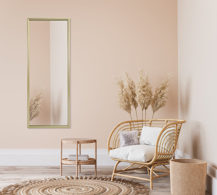 Ce miroir en métal doré clair est à la fois chic et discret. Il peut s'accrocher verticalement ou horizontalement. Dimensions: 40x140cm.