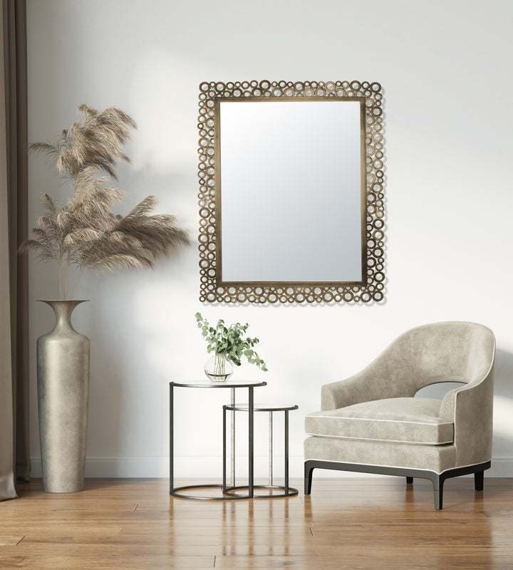Ce miroir bulles doré apportera une touche graphique à votre intérieur. Matière : métal. Dimensions : 98.5x78cm