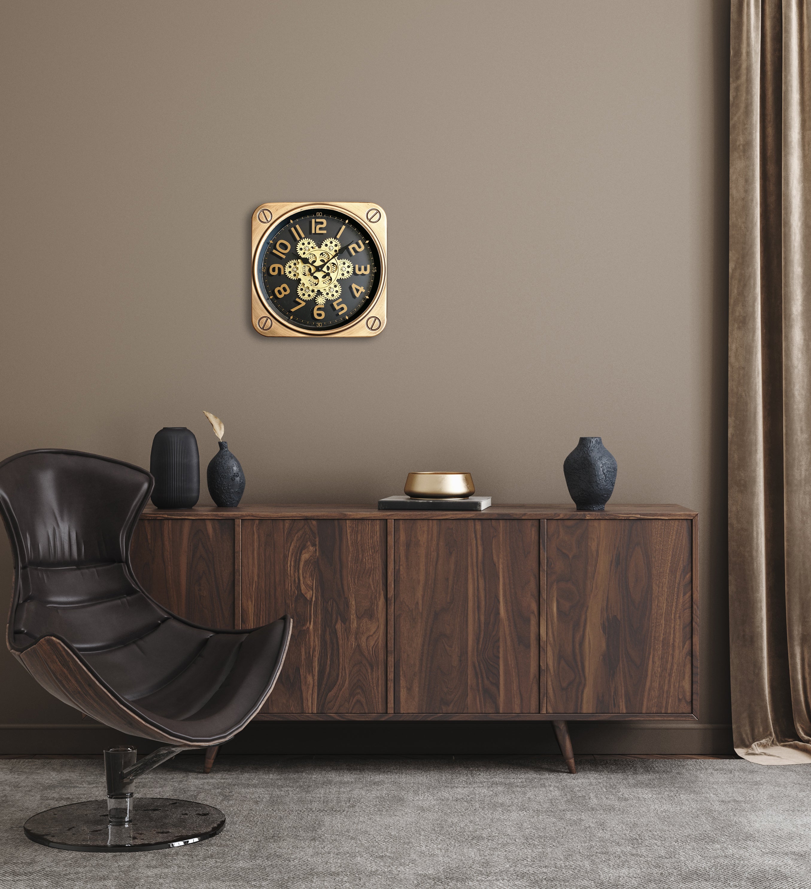 Horloge carrée à mécanismes métal doré 35cm