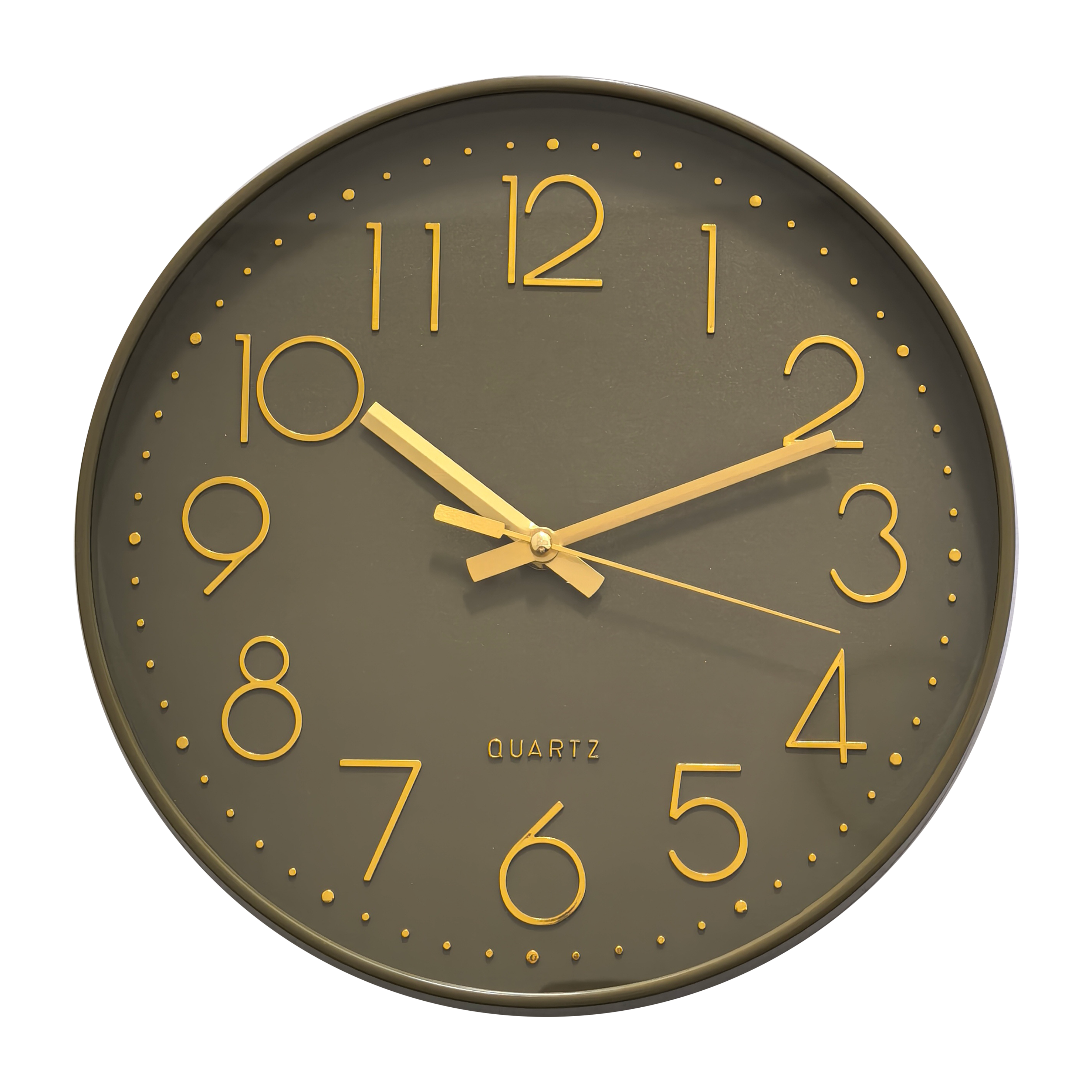 Horloge moderne de diamètre 30,5 cm, se décline en plusieurs couleurs: ici en jaune ocre. A accrocher au mur. Fonctionne à l'aide d'une pile AA, vendue séparément.
