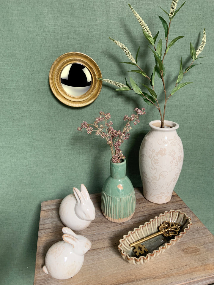 Que vous l'accrochiez dans votre entrée, votre salon ou votre chambre à coucher, ce miroir convexe doré offre une réflexion déformée et fascinante qui ajoute de la profondeur et du caractère à votre décor. Diamètre : 18.7cm