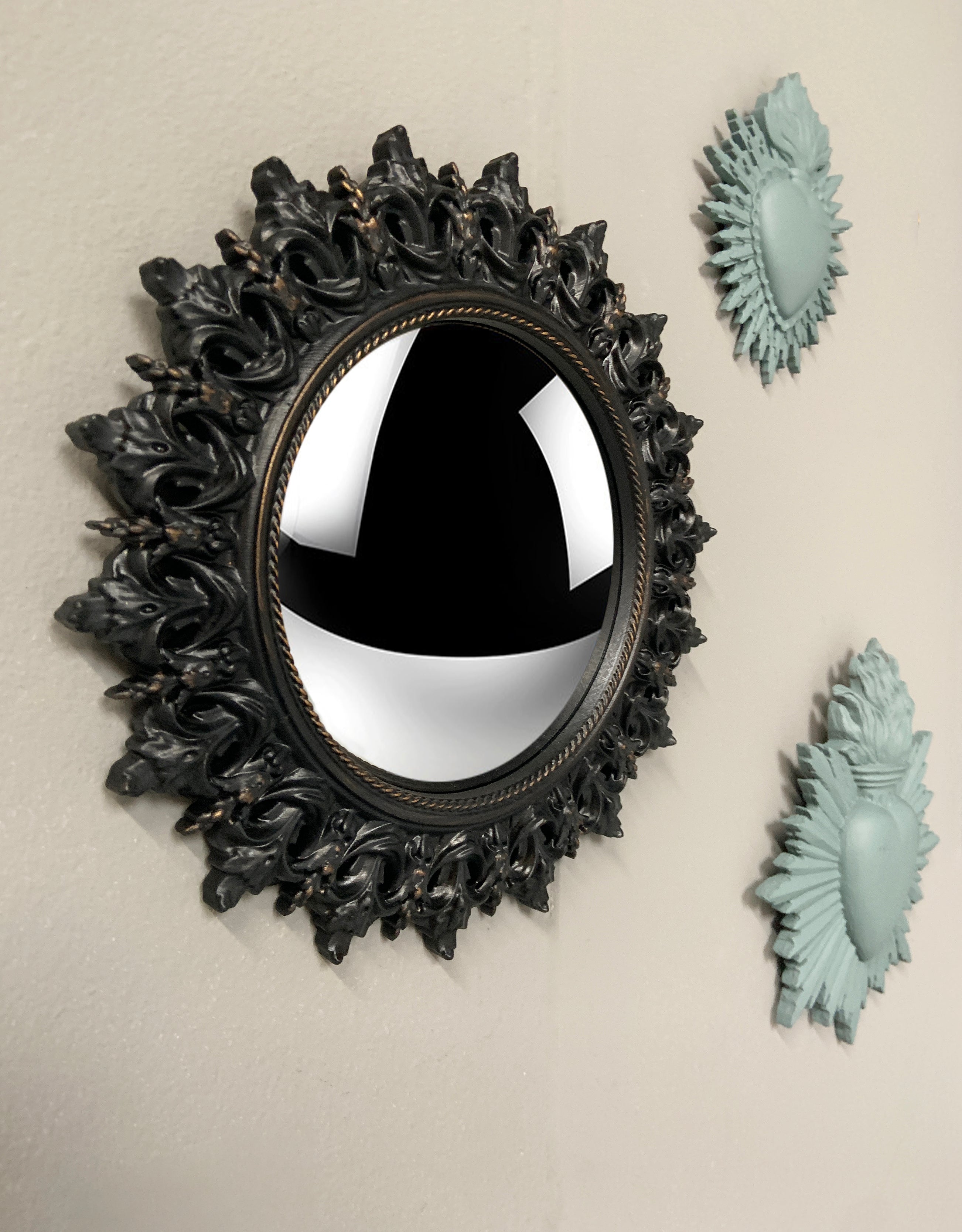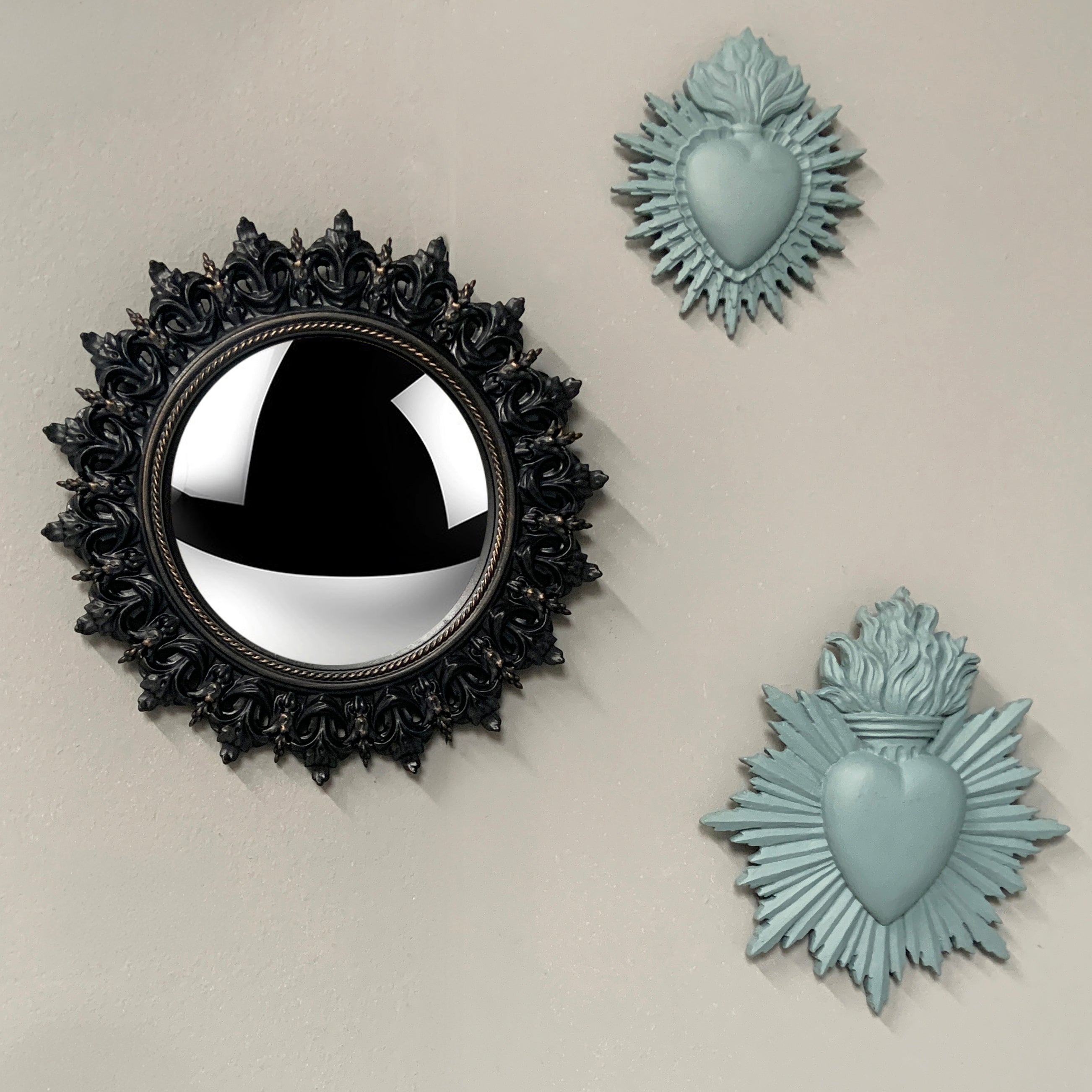 Que vous l'accrochiez dans votre entrée, votre salon ou votre chambre à coucher, ce miroir convexe noir offre une réflexion déformée et fascinante qui ajoute de la profondeur et du caractère à votre décor. Diamètre : 21.3cm