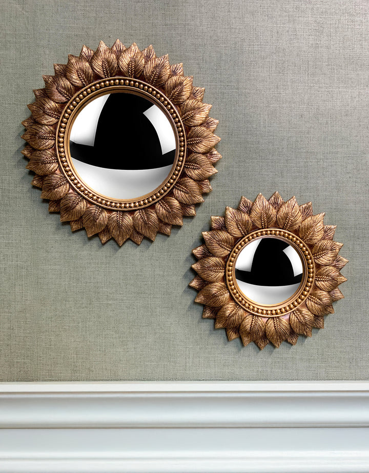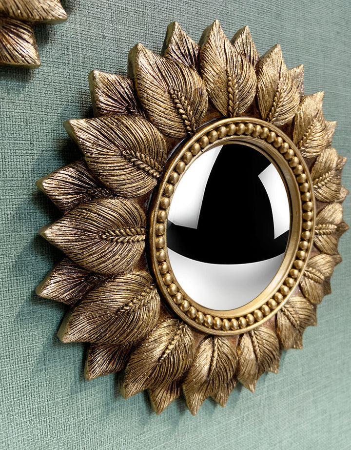 Miroir feuilles convexe doré 24.3cm